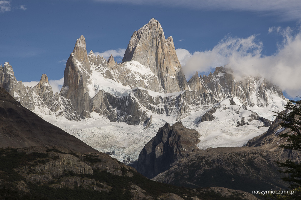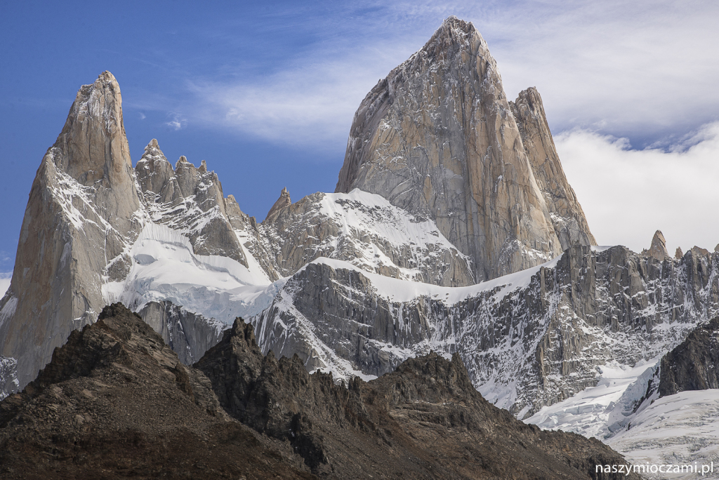 Fitz Roy (3405 m npm) jest jedną z trudniejszych gór do zdobycia na świecie. Niewielu osobom udaje się doświadczyć panoramy z samego szczytu, bo kilkusetmetrowe, niemalże gładkie, granitowe, strzelające w niebo wieże wymagają szczególnych umiejętności technicznych, a surowa i nieprzewidywalna pogoda nie daje wielu okazji do wspinaczki. Ciekawe porównanie zdobywalności Everestu i Fitz Roya podaje Wikipedia: “Today, when a hundred people may reach the summit of Mount Everest in a single day, Monte Fitz Roy might only be successfully ascended once during the span of a year”.
