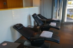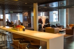 Moja asystentka oprowadziła mnie po tym pomieszczeniu i pokazała wszystkie miejsca, z których mogłem korzystać. Od razu po wejściu, z lewej strony znajdowała się półka z prasą i różnymi magazynami. Dalej pokazano mi pomieszczenia z komputerami do pracy w ciszy (chociaż w całym terminalu panuje niesamowity spokój). Następnie wzdłuż okien ustawione są wygodne fotele z podnóżkami, gdzie można się zrelaksować. Obok nich mamy stoliki wraz z gniazdkami do podładowania naszego telefonu czy laptopa.