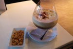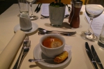Na pokładzie zostałem przywitany przez trzy osoby z obsługi. Szefa pokładu i dwie stewardessy, które w czasie rejsu obsługiwały pierwszą klasę. Po chwili podano kieliszek szampana i przekąskę w postaci krewetki w gęstym sosie. W między czasie rozdano menu z daniami do wyboru oraz kartę win.