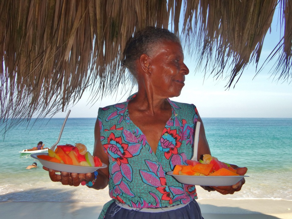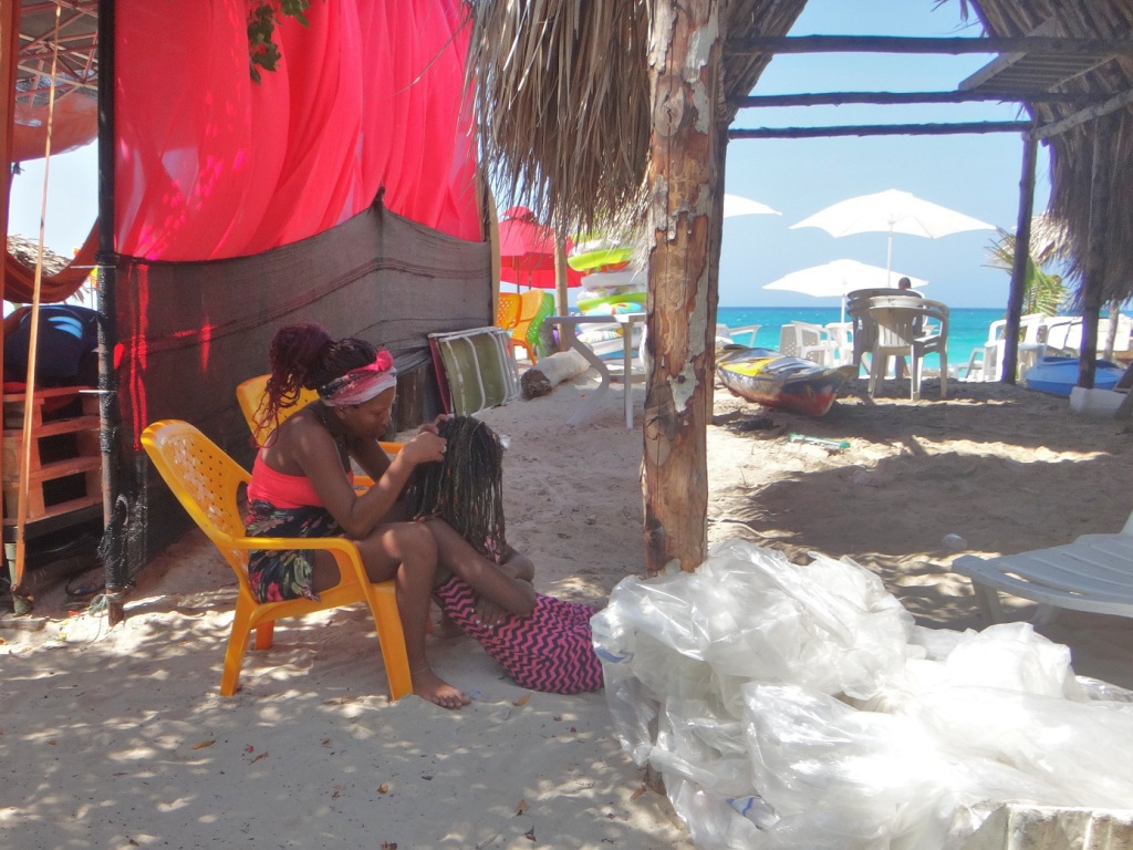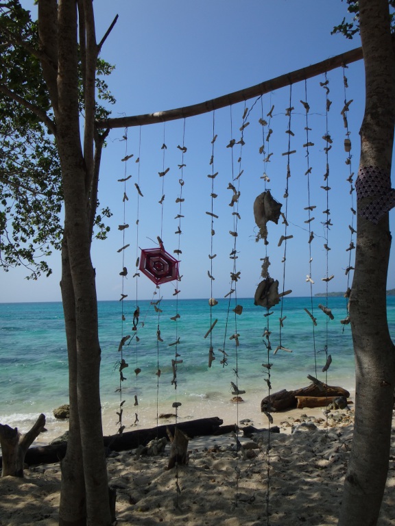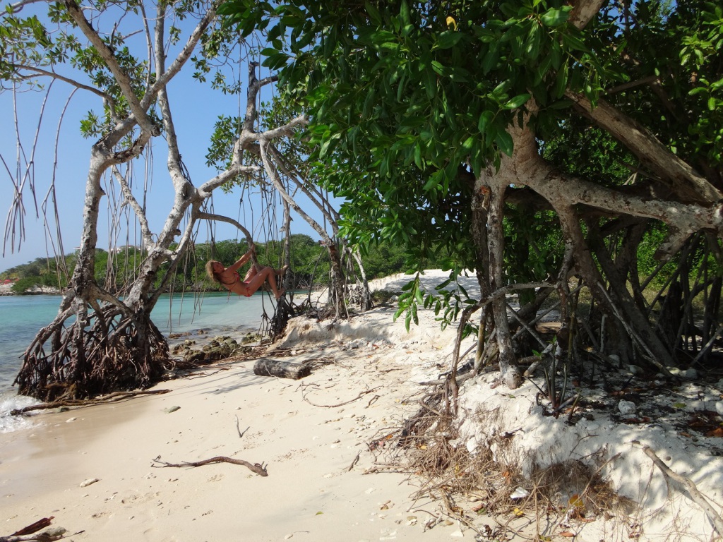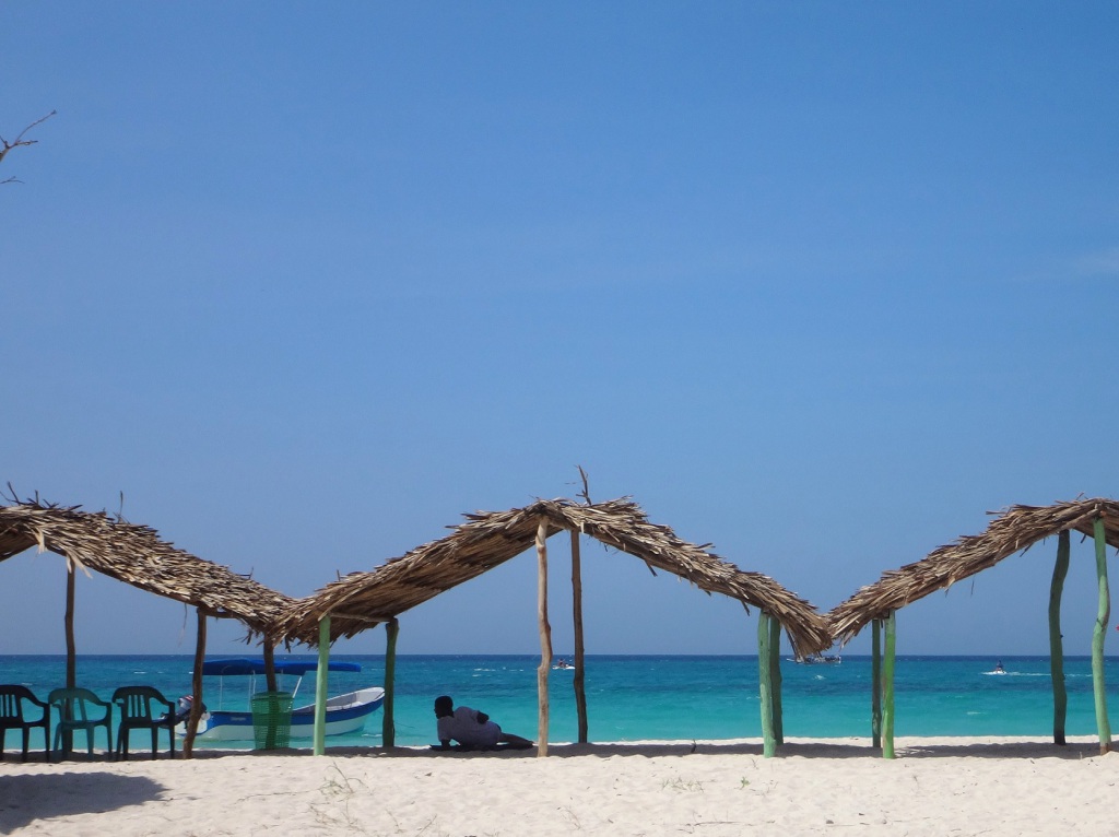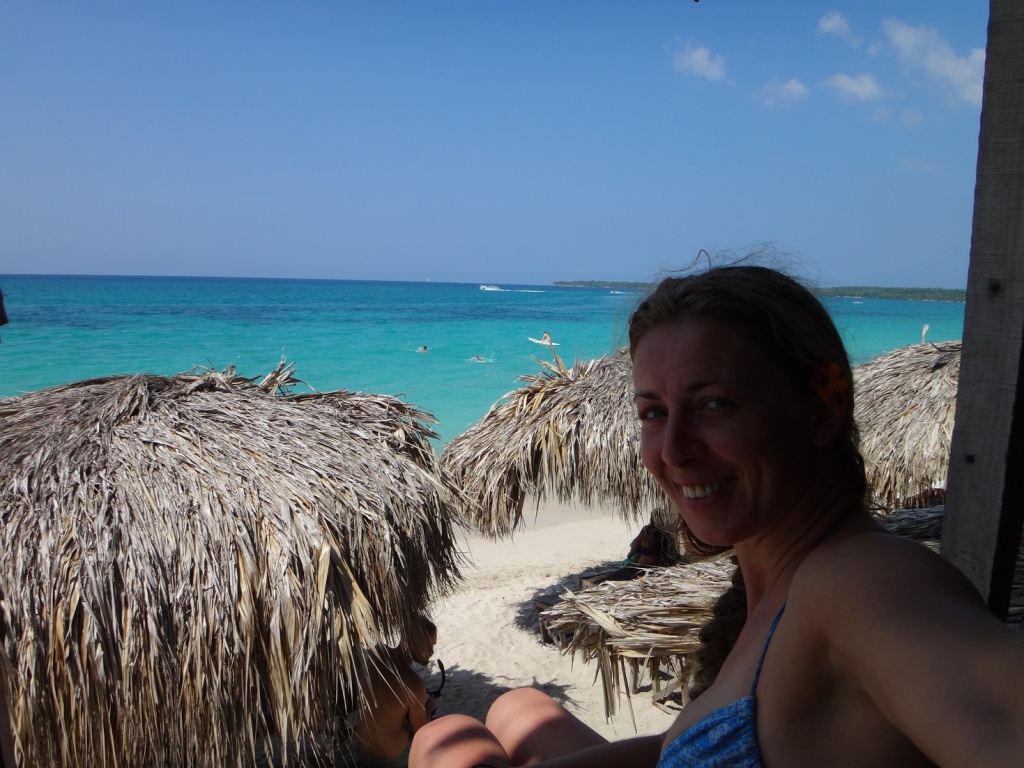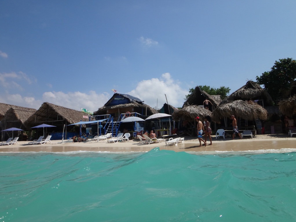 Na plaży spałam u Alexa, jedynka cabana typu szałas z drabiną i widokiem za 30tys COP (cena zmienna, chłopak, który wziął mój domek po mnie płacił 50tys COP, na booking.com jest za 95tys COP), można też spać w hamaku (chyba 10tys COP), są szafki z kłódkami, prąd kilka godzin dziennie, internet w miarę działa, warunki sanitarne dosć naturalne, drewniany ustęp, prysznic trochę z wiadra. U Alexa za darmo można korzystać z kajaka, SUP, masek, jakiś innych gadżetów wodnych. Nie wiem czy zawsze jest za darmo, ale było. Do tej części plaży nie dopływają motorówki z ludźmi, z tinto przychodzi jeden facecik wcześnie rano, z owocami 2 kobitki, sprzedawcy okularów / bransoletek / masaży/ pina colady itd tu raczej nie dochodzą.