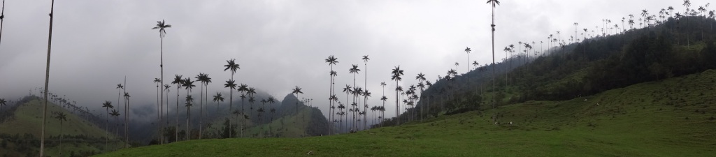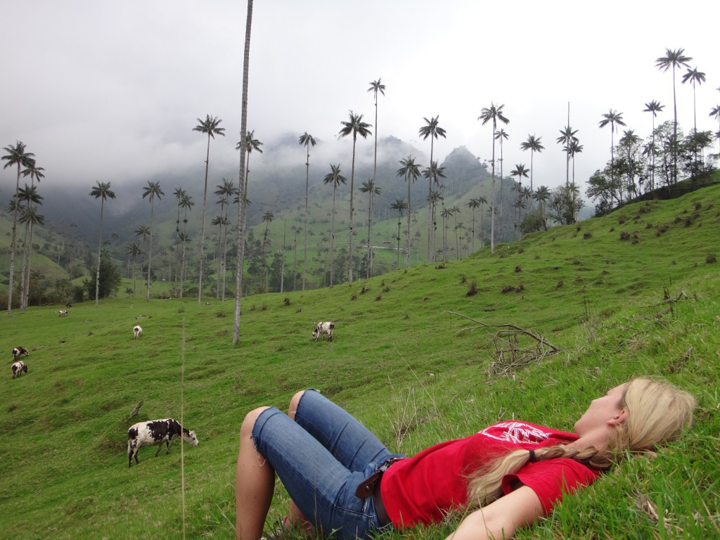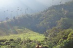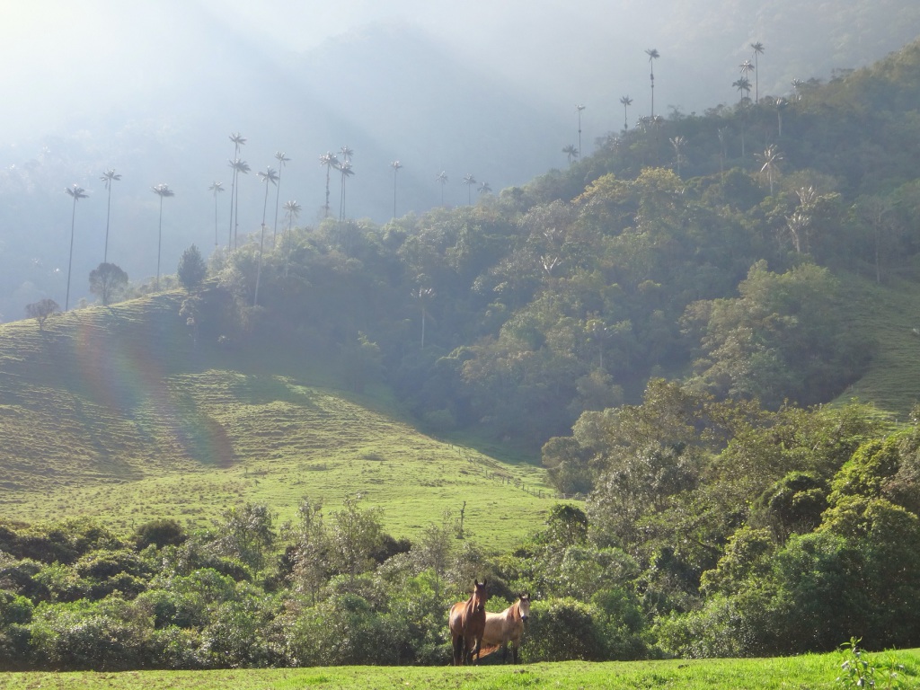 Pobudka przed 6 rano, żeby się załapać na pierwszy transport jeepem do Valle de Cocora (z głównego placu, jeżdżą często, odjężdżają kiedy są pełne 3400 COP, 20minut). Salento o poranku piękne, kolorowe, góry dookoła, główny plac mały i uroczy, taka klimatyczna śliczna turystyczna wioska zadupie. W dolinie Cocora rosną najwyższe na świecie 60-metrowe palmy woskowe, narodowe drzewo Kolumbii. Jest tam pełno krów, jest Acaime, jakby-kawiarnia, rezerwat kolibrów i dom tapirów górskich w jednym (wstęp 5tys COP, kawa i jakaś przekąska w cenie). Tapira widziałam tylko na zdjęciu u chłopaka, który wyszedł 5 minut przede mną, poszły w las.