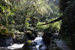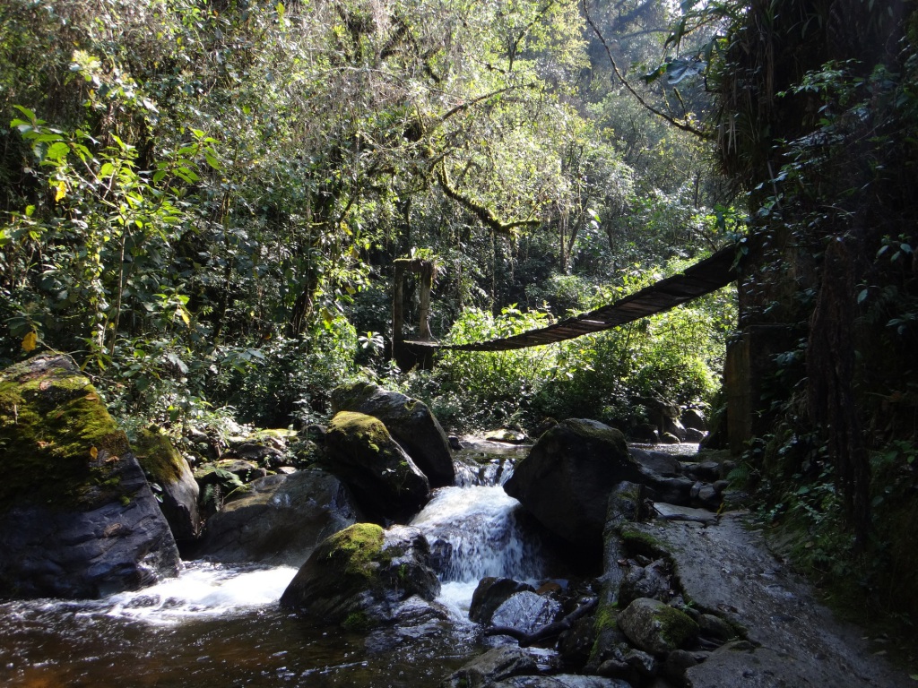 Typowy szlak dookoła z przerwą w Acaime zajmuje około 5-6 godzin, ja raz źle skręciłam, pobiegałam w chmurach na 3140mnpm i zajęło mi to 9 godzin. Za mniej więcej co piątym turystą idzie jeden z lokalnych psiaków, właściwie w całej Kolumbii obowiązuje ta zasada. Po drodzę są mosty, liany, mchy, rzeka, małe wodospady, dużo mgły i rośliny, które u nas rosną w doniczkach. Uwielbiam takie widoki odkąd byłam małą dziewczynką i oglądałam w kółko mój ukochany film przyrodniczy z Arnoldem pt „Predator” (wiem, że był kręcony niżej i gdzie indziej i rośliny inne i w Cocora jest las mglisty, a nie normalna dżungla, ale dla mnie trochę dżungla to dżungla). Na szlaku jest trochę błota i wody, ale nigdy nie jest głębiej niż do połowy łydek. Niektórzy ludzie wynajmują gumowce z hosteli, moim zdaniem trampki są w sam raz, na parkingu na końcu trasy jest szlauf, można się opłukać.