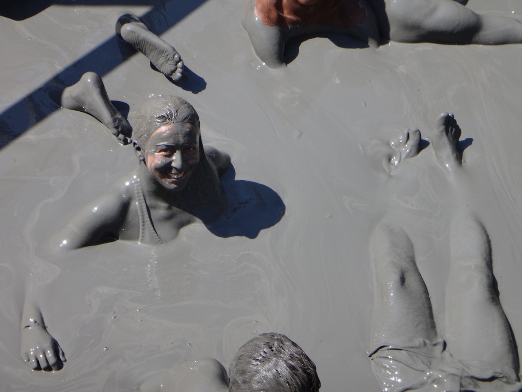 Po czarującej nocy pojechałam do jednej z bardziej uroczo-absurdalnych atrakcji turystycznych Kolumbii – błotnego wulkanu Totumo. Jest prześmiesznie, błoto wulkaniczne wypiera, nie ma dna, tzn jest gdzieś, ale się nie da, próby przejścia do pionu kończą się niczym,ewentualnie przekręceniem na brzuch albo nogi gdzieś sobie płyną. Potem kobitki w jeziorku rozbierają do zera i czyszczą każdy zakamarek ludzki bez skrępowania. Obok wulkanu są najprzyjaźniejsze krowy świata.