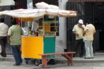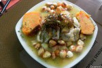 Nieco na południe od Plaza de Armas jest rejon licznych straganów, targowisk i lokalnych barów, który też odwiedziliśmy. Co krok można spotkać starsze panie z przedmieść na chodnikach sprzedające warzywa albo różnorodne owoce. Choć nie miały przy sobie wagi, to wcale im to nie przeszkadzało w handlowaniu. Oczywiście nie zabrakło tam też stoisk z napojami oraz lokalnym jedzeniem. My jednak poszliśmy do baru na bardzo popularne w Peru Ceviche, w zestawie z bardzo dużą miską zupy rybnej to koszt zaledwie S/.6. Ceviche podawane było na talerzu ze słodkimi ziemniakami Camote.