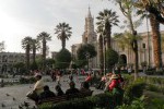 Po dotarciu do Arequipy, która jest położona na wysokości 2300 m.n.p.m. u podnóża wulkanu El Misti 5800 m.n.p.m. znaleźliśmy hotelik ze śniadaniem i pysznym koktajlem owocowym w cenie S/.50 za pokój, położony jakieś 10 minut spacerkiem od Plaza de Armas. Podróż z dworca do centrum taksówką to koszt rzędu S/.6-7. Mały odpoczynek po 11-godzinnej podróży i wyruszyliśmy na miasto. Samo miasto już inne niż Ica. Moim zdaniem bardziej turystyczne i mniej lokalne i dlatego żeby właśnie tą peruwiańską lokalność można było zobaczyć warto było odwiedzić Ica. Oczywiście sam Plaza de Armas w Arequipie z widokiem na El Misti w tle z balkonu restauracji fajna sprawa.